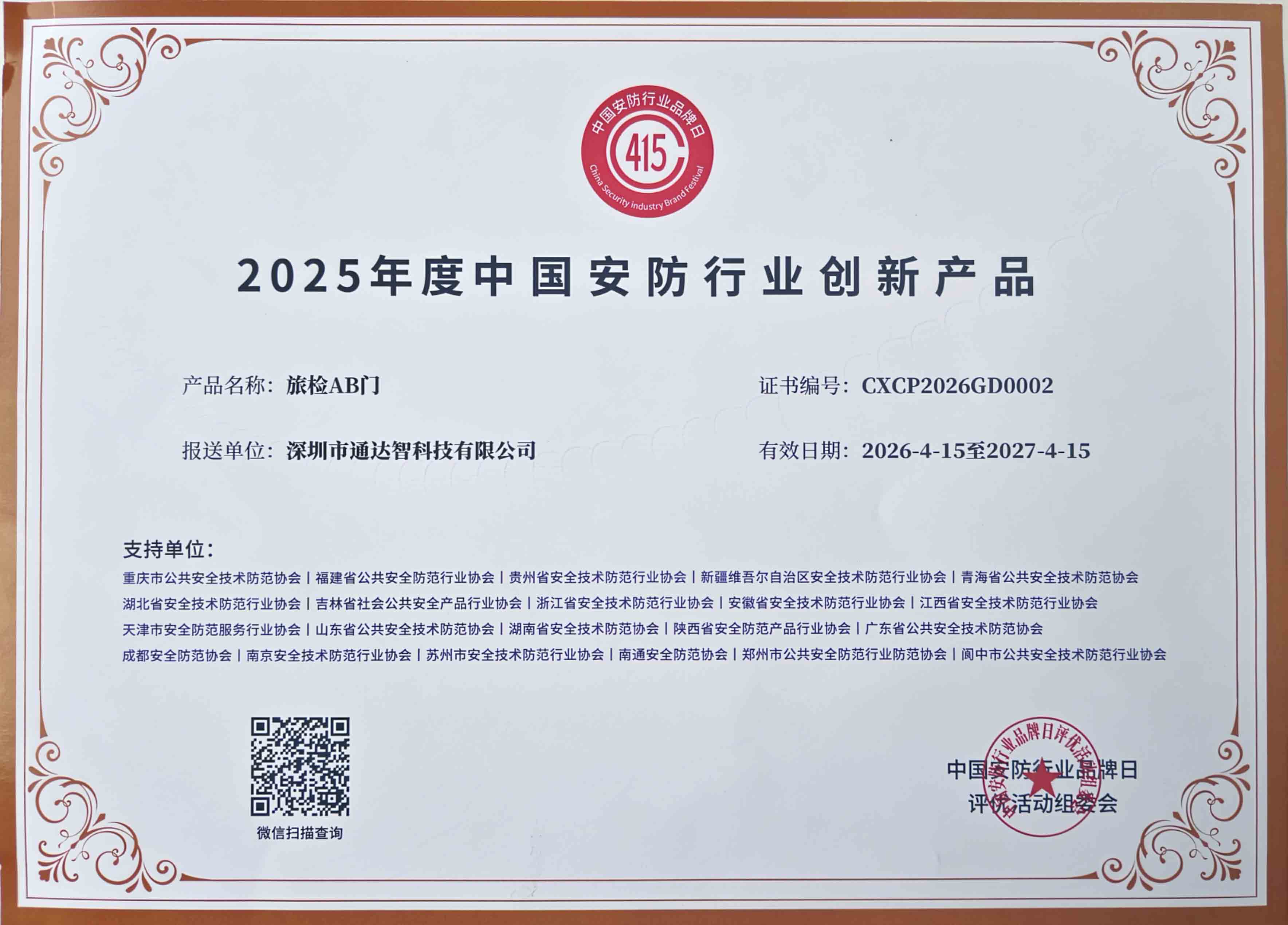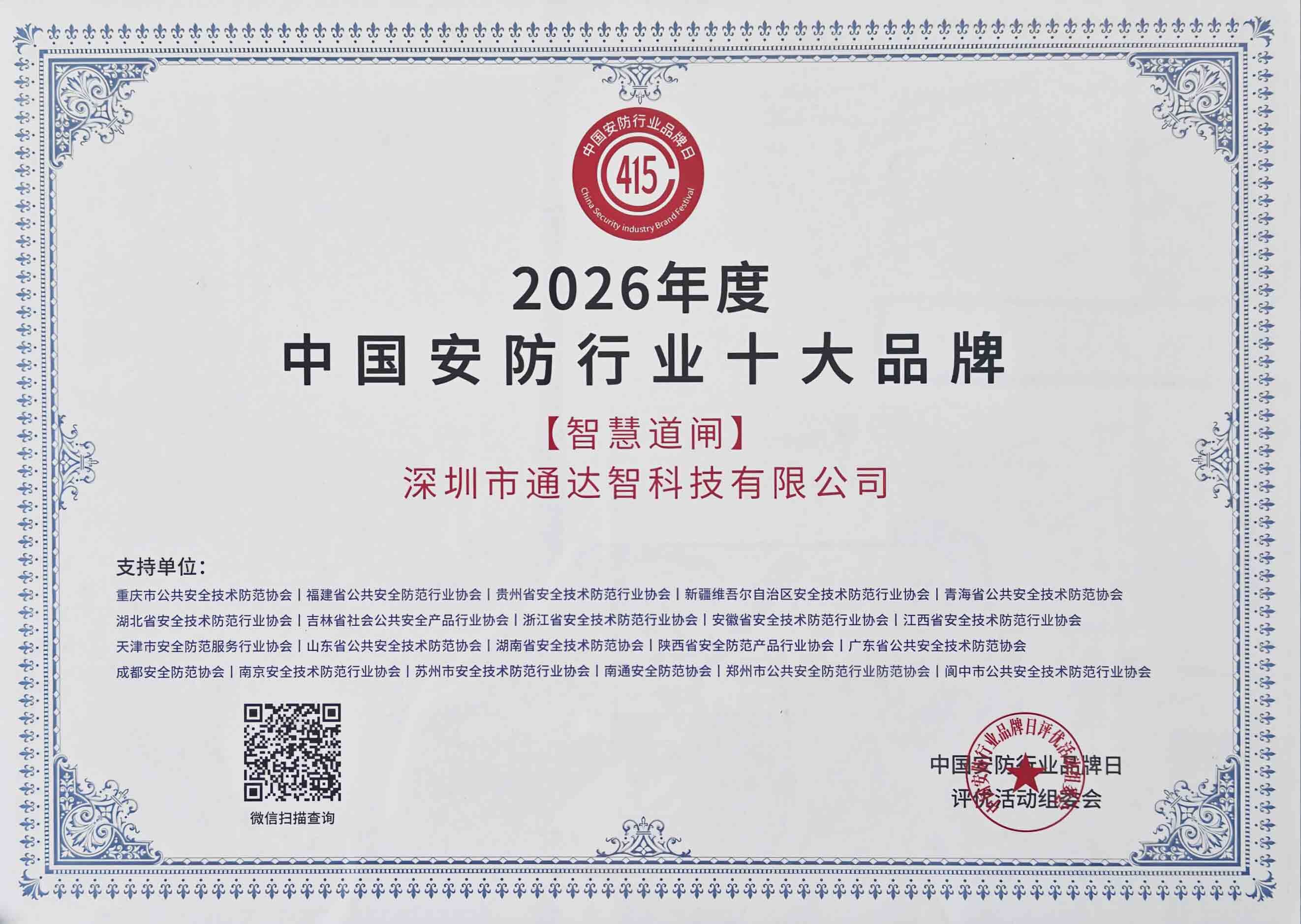 活動(dòng)期間,2026 中國(guó)安防品牌日頒獎(jiǎng)盛典隆重舉辦,現(xiàn)場(chǎng)表彰行業(yè)標(biāo)桿企業(yè)與先鋒人物,樹(shù)立行業(yè)典范。通達(dá)智與眾多優(yōu)秀企業(yè)共同見(jiàn)證榮耀時(shí)刻,我司總經(jīng)理榮膺第八屆中國(guó)安防行業(yè)新銳領(lǐng)袖榮譽(yù)稱號(hào),榮獲2026年度中國(guó)安防行業(yè)十大品牌、旅檢AB門獲2025年度中國(guó)安防行業(yè)創(chuàng)新產(chǎn)品。
