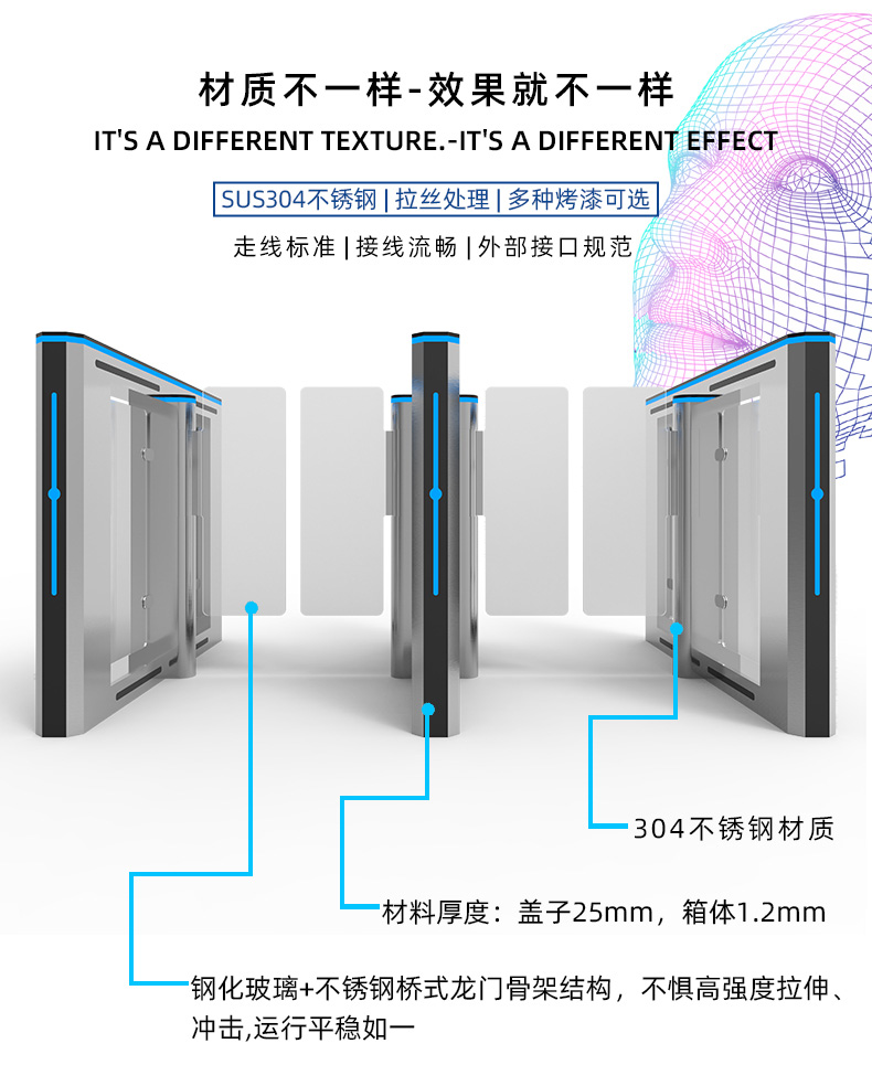 通達(dá)智速通門(mén)TDZ-B286SQ,是高端款室內(nèi)速通門(mén),機(jī)身兩側(cè)采用304不銹鋼材質(zhì)加烤漆,抗銹性能強(qiáng)。上蓋采用黑色亞克力材質(zhì),抗指紋,不易粘塵。機(jī)身有明顯的紅藍(lán)綠燈光指示標(biāo)識(shí),能夠有效指引人員通行。多應(yīng)用于大廈、寫(xiě)字樓、機(jī)關(guān)單位辦公區(qū)域等地方。