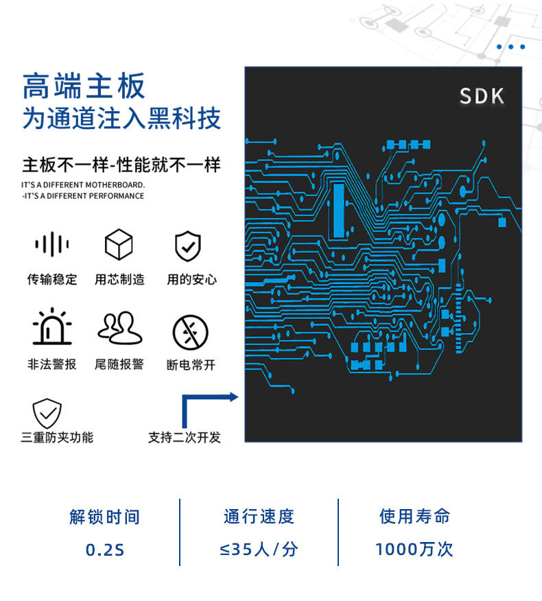 通達(dá)智速通門(mén)TDZ-B286SQ,是高端款室內(nèi)速通門(mén),機(jī)身兩側(cè)采用304不銹鋼材質(zhì)加烤漆,抗銹性能強(qiáng)。上蓋采用黑色亞克力材質(zhì),抗指紋,不易粘塵。機(jī)身有明顯的紅藍(lán)綠燈光指示標(biāo)識(shí),能夠有效指引人員通行。多應(yīng)用于大廈、寫(xiě)字樓、機(jī)關(guān)單位辦公區(qū)域等地方。